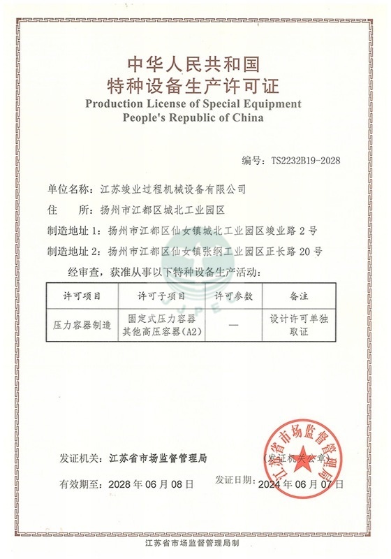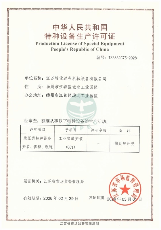 江苏竣业过程机械设备有限公司以节约能源和保护环境为主要方向开展设计、生产、安装过程设备、压力容器以及低速回转设备,并提供相关服务的专业公司。主要产品广泛应用于石油化工、环境、海水淡化、造纸制浆、炭黑、能源、冶金、材料等领域。设备的主要材料除了碳钢、不锈钢、双相钢之外,还包括钛材、镍基合金材料、各种有色金属材料;非金属内衬橡胶、frp或ptfe内衬等。