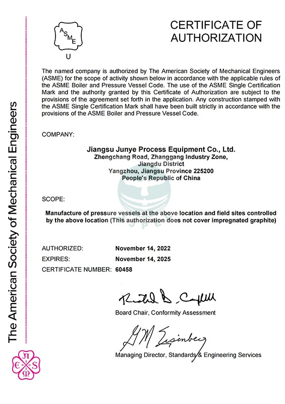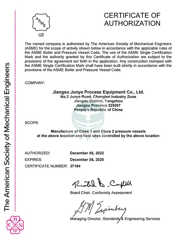 按iso9001、gb-a2 和asme (u和u2)标准建立的质量控制体系